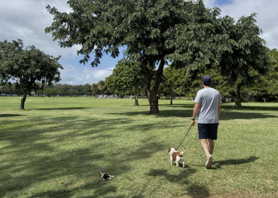 公園内からはダイヤモンドヘッドを間近に眺めることができ、木陰も多いため、日差しが強い日でも比較的快適に歩けます。ワンちゃんと並んで歩きながら、ハワイの自然を感じられる時間はとても穏やかです。