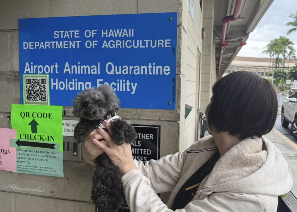 ホノルル空港のハワイ動物検疫所でクロエちゃんと飼い主さん、ついに再会🐶💓